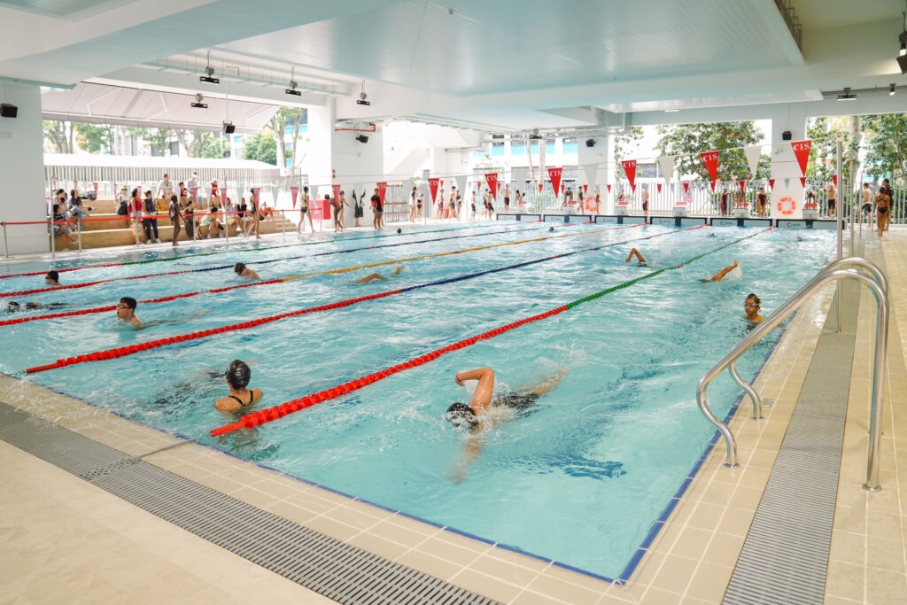 50メートルプール、フルサイズのサッカーグラウンドなど、大変充実した設備が魅力。2023年に低学年用の校舎が新設され、体を動かしながら様々なモータースキルを養える綺麗なプレイグラウンドが完成。